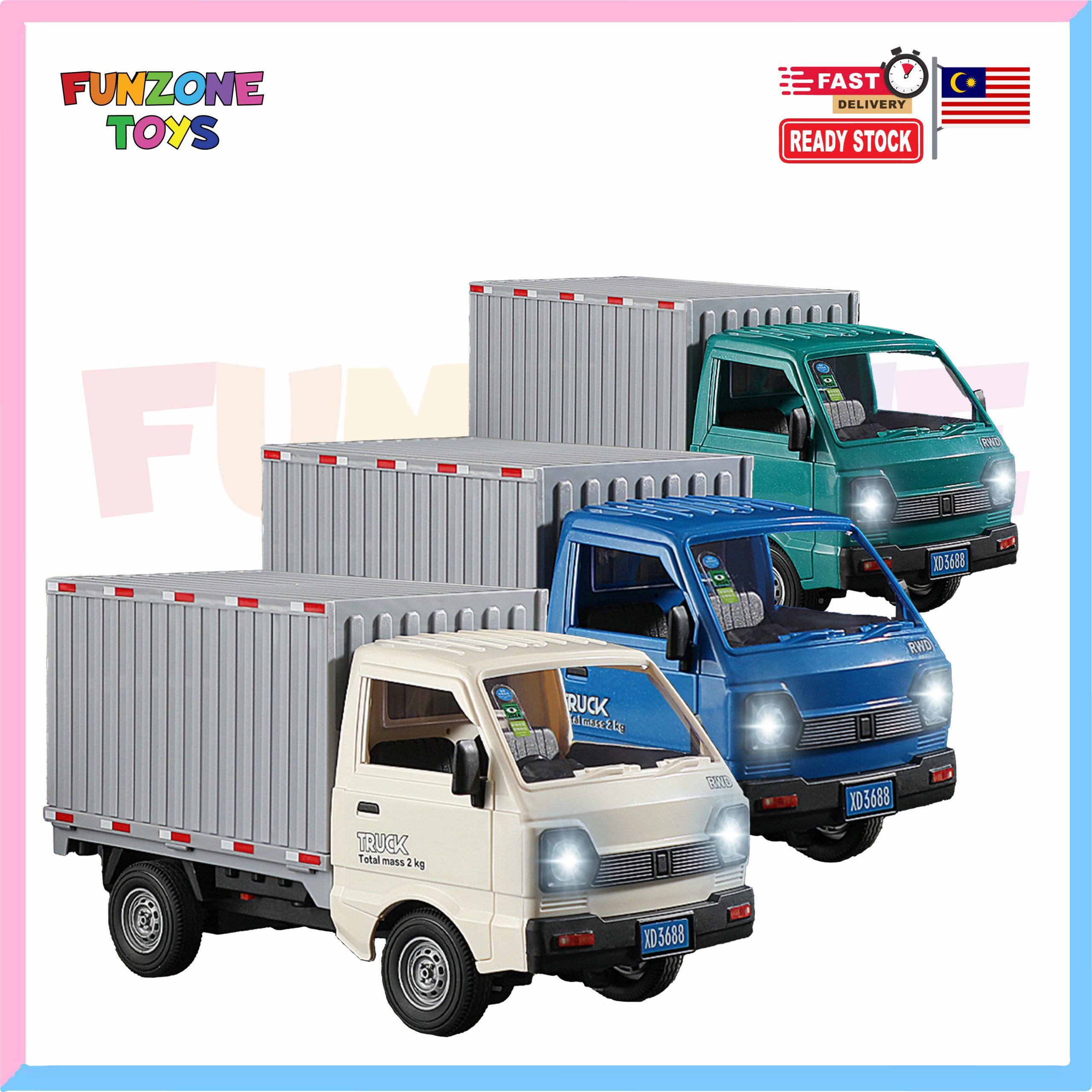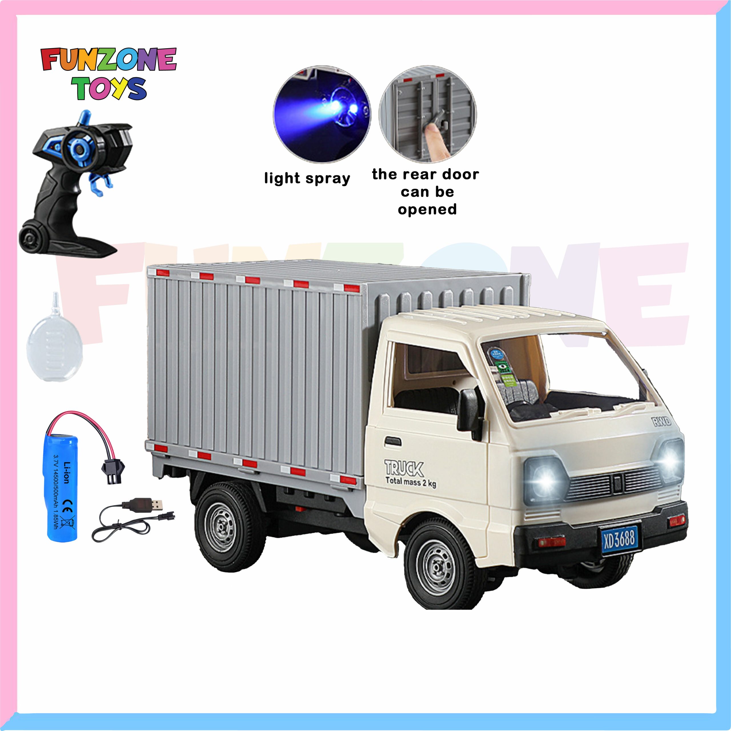 1:20 RC Cargo Truck with Spray, Lights & Opening Doors – 2.4GHz Remote Control Vehicle