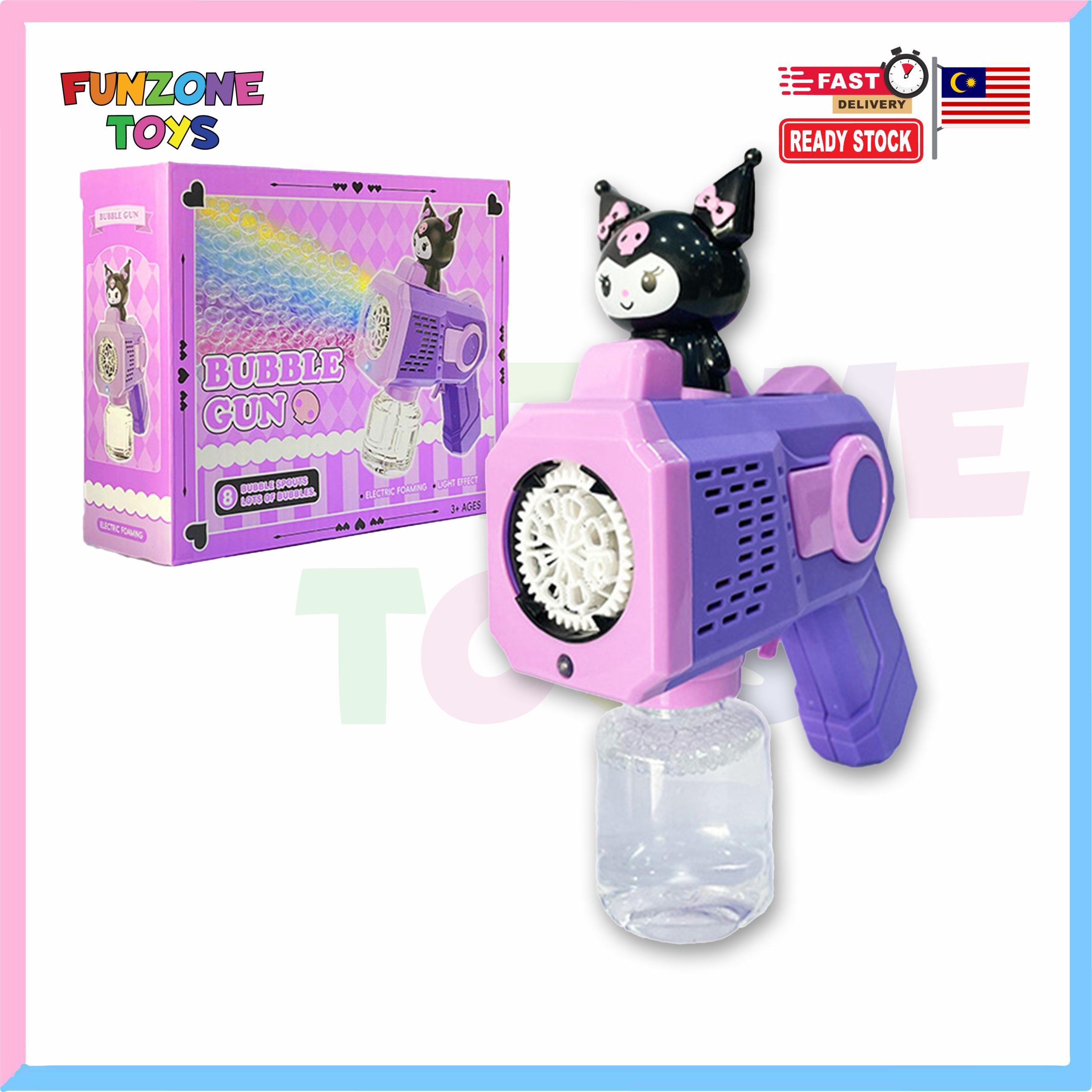 8-Hole Kuromi Automatic Bubble Machine with Light – Fun & Cute Bubble Blower for Kids!